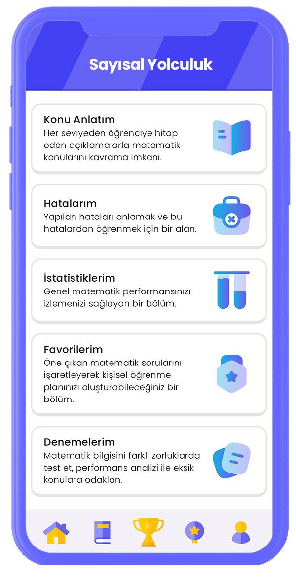 Uygulama, başlangıç seviyesinden ileri seviyeye kadar her kullanıcının ihtiyacına uygun detaylı matematik testleri sunar. Her bir test, kullanıcının mevcut bilgi seviyesini dikkate alarak hazırlanmıştır.